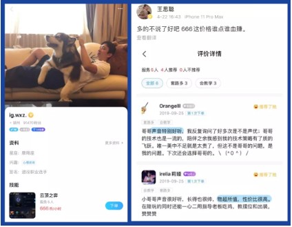 ▲王思聪在游戏陪练APP上注册的账号,陪练价格为666币(游戏平台代币)一小时,并且已经接了十几单,根据评论来看,服务水平不差。