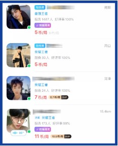 ▲某游戏陪玩平台网站,多数陪玩不会使用真人头像,都是网上随手可以搜到的网红自拍。