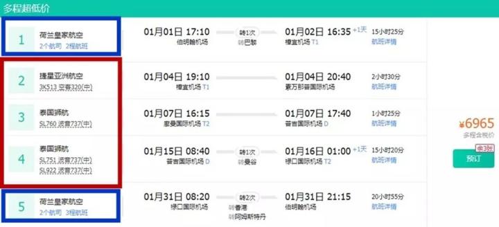 假如一个旅客要从伯明翰去新加坡开会,然后顺路去泰国玩一圈,最后返回伯明翰。那么,机票引擎就会把伯明翰到新加坡+从新加坡回伯明翰的两段旅程推荐为全价航空,而中间去泰国的那几趟飞机推荐为廉价航空。