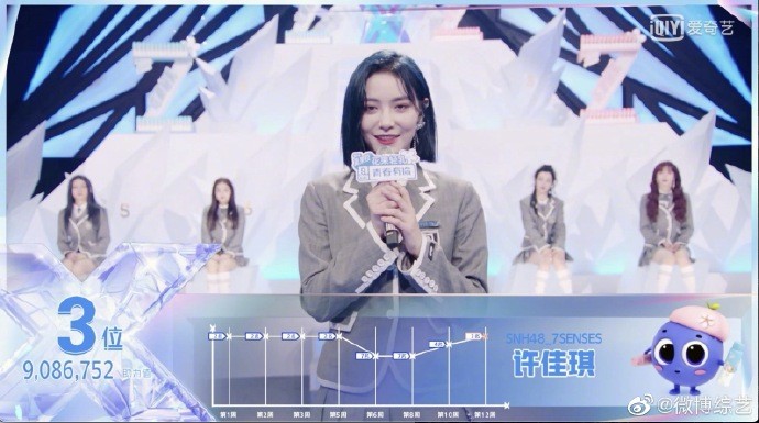 最终包括刘雨昕、虞书欣、许佳琪、喻言、谢可寅、安崎、赵小棠、孔雪儿、陆柯燃在内的9位选手成功出道,组成新的限定组合THE NINE。