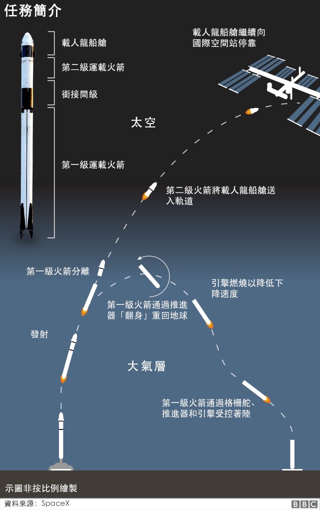 SpaceX 载人航天任务示意图. 图片来自:BBC