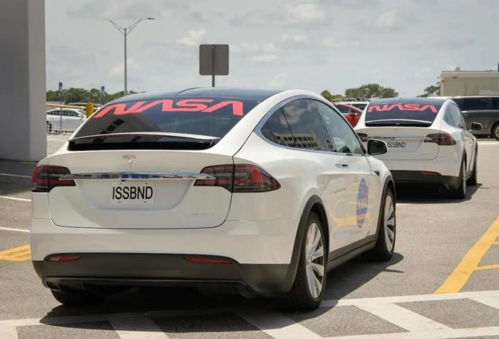 乘坐摆渡车登上发射台一直是 NASA 的传统,比起过去的摆渡小巴,这次的 Model X 显然更加拉风。这辆 Model X 的车牌 「ISSBND」意为国际空间站,也表明了这次任务的目的地。