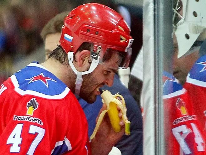 冰球场上,一条条黄橙橙的热带水果足以保证球员的生命线。