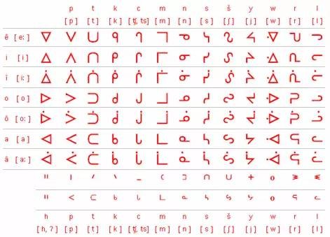 纳斯喀皮文字的读音。你找到ᐛ了吗?丨Wikipedia