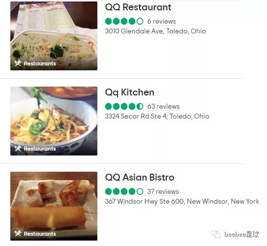 在猫途鹰上,名为QQ的中餐厅评价打败了大多数其他的中餐厅。