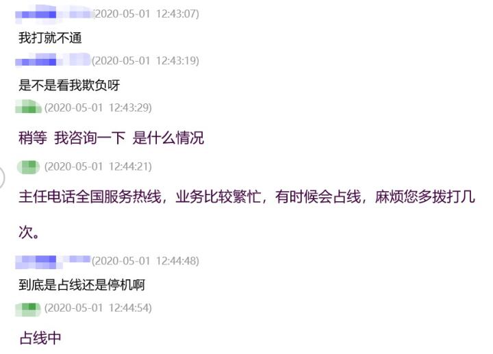 老哥有点生气,这什么垃圾号码,没一个打得通。但是客服否认是电话有问题,让老哥再多试几次,老哥按照客服说的又打了几次电话,每次都占线。