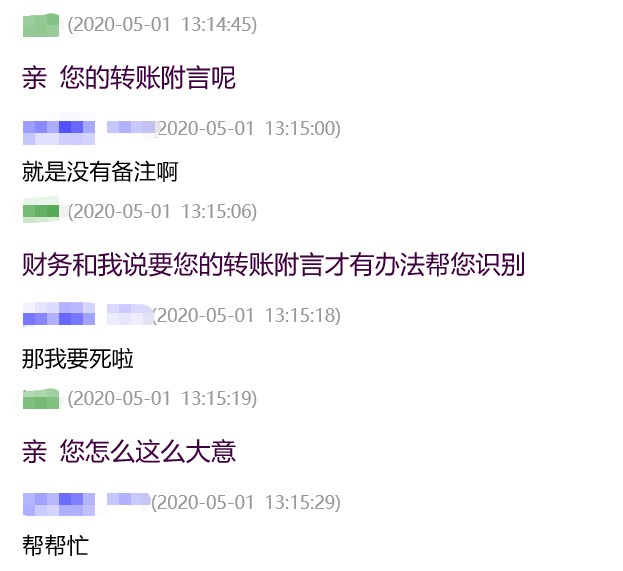 “亲,您的转账附言呢?没有备注,系统不能识别您这笔钱的用途,没法解冻啊。