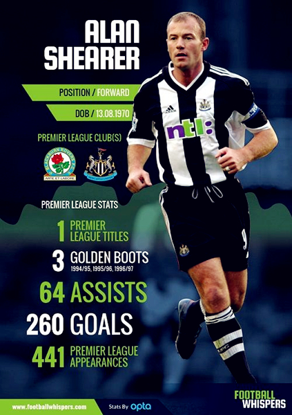 在巴拉克登陆英超的2006/07赛季,英超历史最佳射手阿兰-希勒已经退役。在长达18年的英超生涯中,阿兰-希勒保持着场均0.59球的得分效率,考虑到他的球队在大多数赛季中都非顶尖,能够取得这样的得分效率殊为不易。