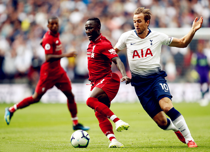 (图)凯恩来到中场与纳比-凯塔缠斗。