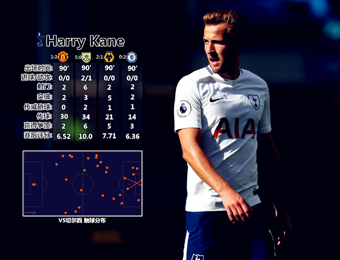 作为能突能传能背身的“移动桩”,凯恩在这场比赛中比较全面地展示了自己的能力,蓝军高大但略显笨重的中卫和后腰在他的冲击下疲于奔命。彼时热刺还是全英瞩目的青年近卫军,主打重金属炮轰流,略显骨感且步伐轻盈的凯恩如鱼得水。