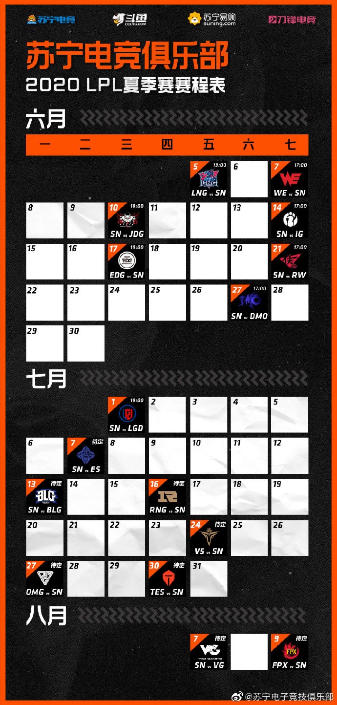 而除了BLG战队之外,各个战队都陆续公布了自家的赛程表,供各个战队粉丝收藏。你觉得哪家战队的赛程表设计的最好看呢?