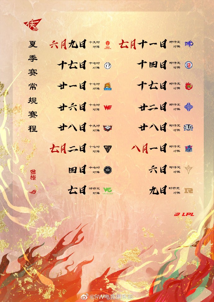 LPL夏季赛各战队赛程表:春决重演将在6月14日打响