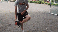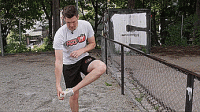学习月食技巧的第一步是学会从自己腿间跳过,所以我们先将球放到一侧,一只脚支撑,学会像下面这样跳跃。