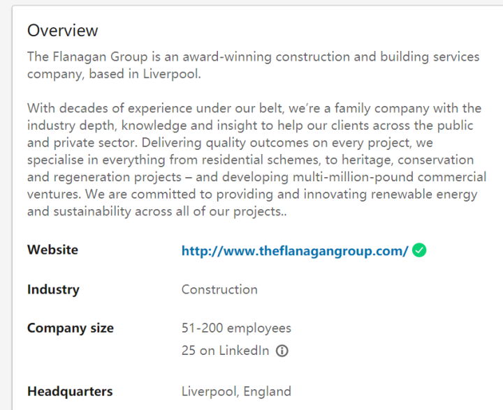 退而求其次,我找到了弗拉纳甘集团在领英上的官方账户,发现他们的雇员选择的是50-200人之间。