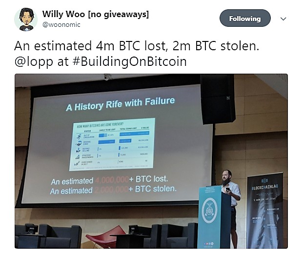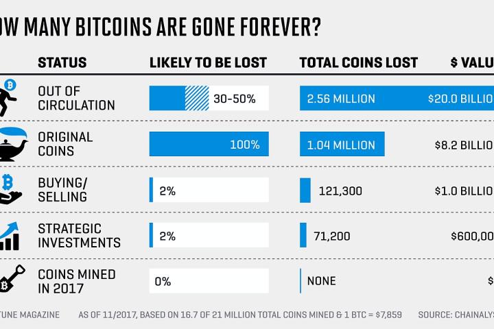 根据专业研究比特币区块链的数字取证公司Chainalysis的最新研究,已经有278万到379万比特币已经彻底流失。