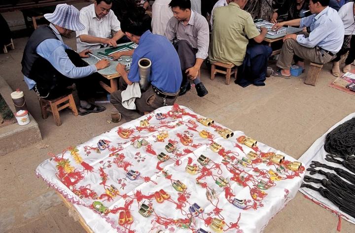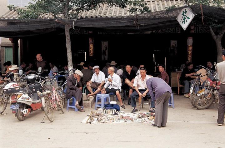 #茶馆门口的古玩摊。