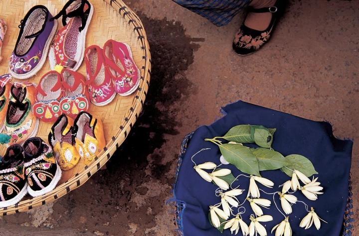 #尤老太布鞋摊旁的缅桂花摊。缅桂是昆明特有的一种花。