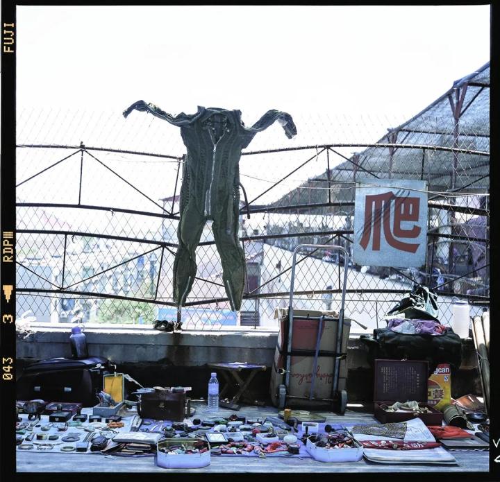 ▼这是一位内蒙古男人的摊子,他游走江湖搜罗古怪背着地摊叹世界,这件挂在铁丝网上的60年代国产空军战斗服便是他最得意的收获。