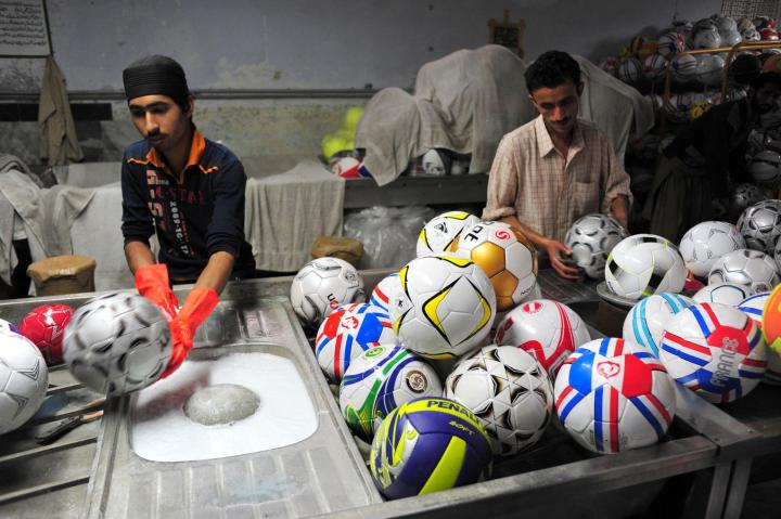 接下来再谈谈手缝工艺,以Select旗下Derbystar德甲比赛球为例,32块球面拼接需要缝630针和60个针脚,使用18米长的缝线,一个熟练技工需要2-3小时才能制作一个完整的足球。而目前手缝足球的工艺哪里最好?这就是“巴铁”巴基斯坦!Select、Derbystar以及其他一些品牌的高端手缝比赛球、训练球,几乎都产自巴基斯坦。也正是在这种传统手工艺的帮助下,让现在的中高端手缝比赛球、训练球,能够拥有非常出色的使用耐久性,而且现今拥有不少新科技辅助,手缝足球也拥有很好的防水、防污效果,只要不是连天雨战,实战性能不会受到影响。