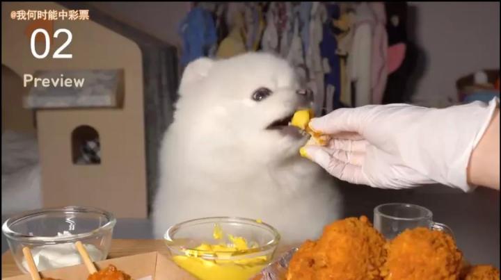 甚至还有能萌你一脸血的博美狗狗吃播。。。
