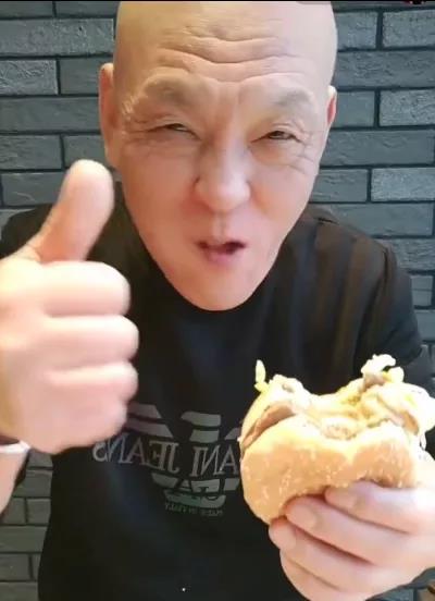 并且无论是吃什么,他总会在视频结尾时用夸张的手势和语气说: