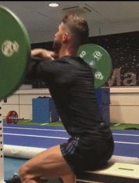 即便是做下图的深蹲动作,拉莫斯都采取小重量且能锻炼腹部核心力量的杠铃深蹲,而不是用史密斯机器追求大重量。