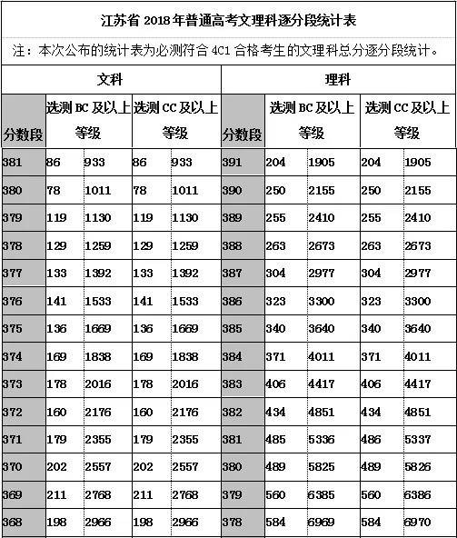 江苏2018年逐分段统计表节选,1分背后是几千考生