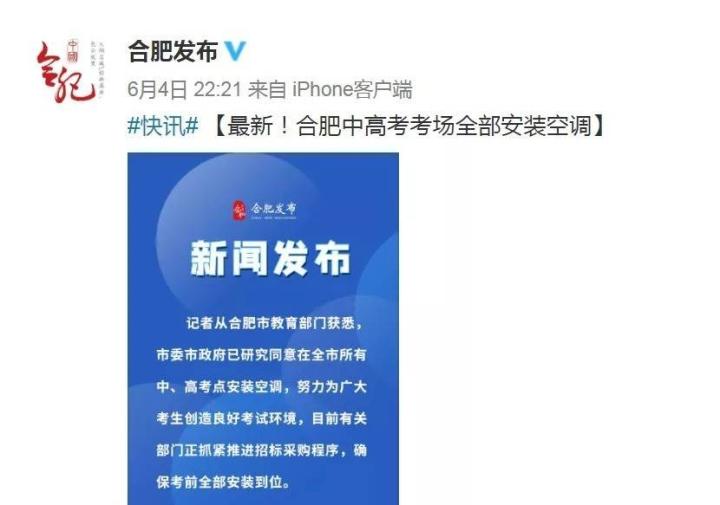 合肥连夜宣布高考装空调的消息,重视程度显而易见