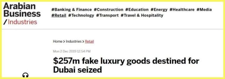 迪拜那边查了一批价值2.57亿美金的仿货,数量近3万件,LV和Chanel占大头。