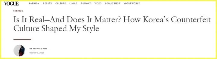 美国顶级时尚杂志VOGUE专栏作家MONICA KIM写过一篇自己全家和仿品的故事。