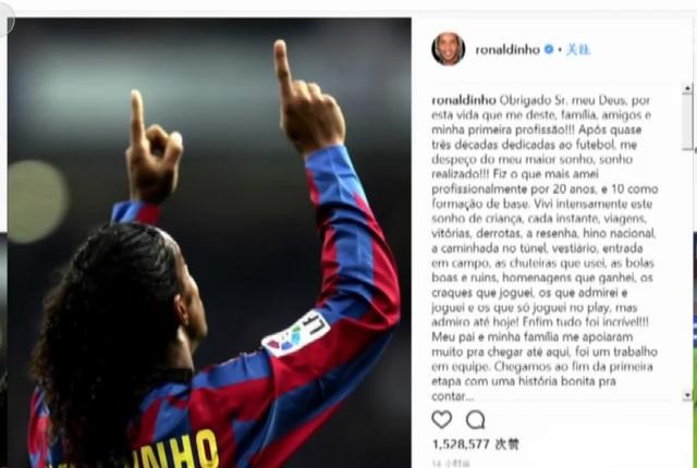 2018年,小罗在社交媒体上宣布退役,背景依然他身穿巴萨的球衣……