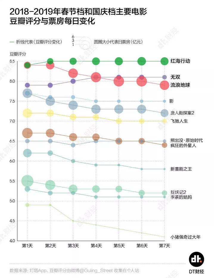 这么一番比较,粉丝对于豆瓣评分影响《流浪地球》票房的指摘,多少显得有些过度反应了——至少从节日档期来看,豆瓣得分的下滑,并没有发挥出多大威力。