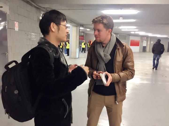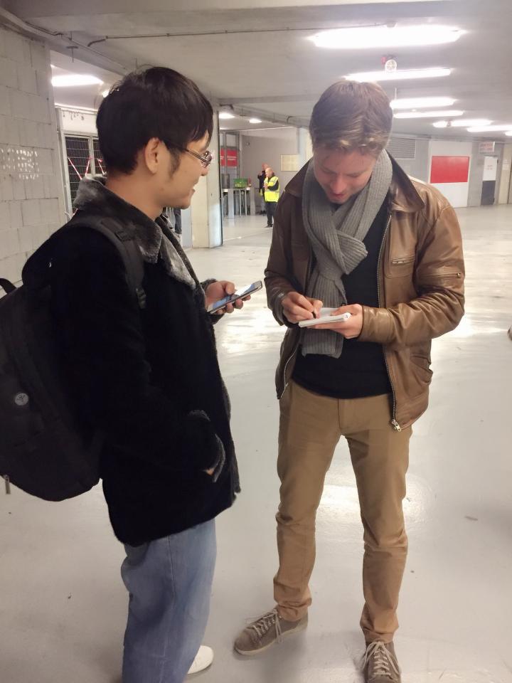 我们本想提前几分钟离场避开散场时的大队人群,没想到被一位在现场的荷兰记者盯上了;可能看出我们是东方面孔,在我们离场往外走的时候他追出来喊住了我们问我们是不是从中国来的想问几个问题,应该是和斯拉维亚现在的中资身份有关了。果然他问我们为什么来这里看球,跟斯拉维亚是中资球队有关系吗,我们对于这种中资的海外球队有什么看法?我跟他介绍说我们是来布拉格旅游的,平时就喜欢看球,也去过国外和欧洲很多地方专门看球赛,所以来旅游有机会就顺便看场球,昨天还去看了杜克拉和斯巴达的德比;至于斯拉维亚是不是中资我们并不是太关心,那时候中资在海外投资足球正是热潮期,我还拿出我手机里存的一张中资球队海外分布图给他看,告诉他我也买了一支西乙球队的股份呢;我们希望中资投资海外球队能对中国本身的足球发展有帮助,否则的话和我们球迷的关系就不大啦;在国外看球被一个外国记者采访也是破天荒头一次了,又是一次有意思的看球经历。