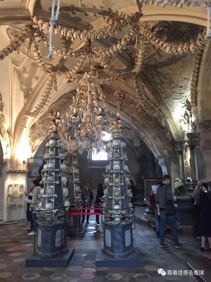 令人毛骨悚然的人骨教堂是由于13,14世纪黑死病和战争导致了大量的人口死亡,教堂墓园容纳不下数量庞大的尸体而想出来的办法,用人骨来装饰教堂;这座中世纪的哥特式小教堂坐落在四万人的尸骨上,和意大利米兰的圣伯纳迪诺人骨教堂以及葡萄牙埃武拉的圣弗朗西斯科教堂并称为世界三大人骨教堂。