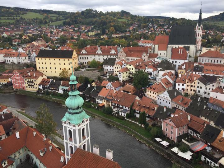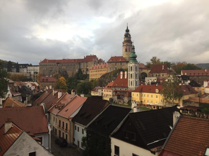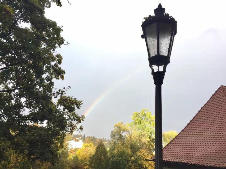 库特纳霍拉难忘的一日游结束,第二天早上离开布拉格去著名的CK小镇。CK小镇的大名叫克鲁姆洛夫(Cesky Krumlov),位于布拉格以南约175公里,从布拉格坐著名的student agency的黄色大巴大概需要三小时,大巴上有厕所,免费WIFI和茶水咖啡。CK小镇号称世界最美小镇之一,以童话般的中世纪风景而闻名;小镇不大,不一会就能逛完,处处都是风景;从各个角度拍拍城堡和彩绘塔,登上城堡俯瞰整个小镇和伏尔塔瓦河,城堡后的花园更是别有洞天,我们去的时候还赶上了雨后的彩虹;各种富有情调的民宿旅馆、纪念品小店和餐厅咖啡厅,可以让你悠闲的享受小镇时光;这里也有波丹妮的门店,甚至还有北京酒家和上海餐厅。