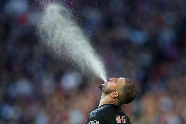 引申一下的话,某位知名门将曾凭借一招“口吐莲花”的绝技傲视英超群雄,其实这里面也是有说法的。在比赛中的死球或其他空闲时间,我们可以经常看到有球员拿着运动饮料在场边“漱口”。