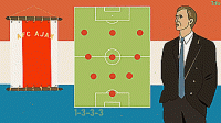 作为球员,贝肯鲍尔的拜仁曾使用过类似4-3-3的阵型。在这个阵型中,就像迈克尔的阿贾克斯和哈佩尔的费耶诺德一样,两名中后卫中的一名在本质上就是一名清道夫,即使是在四后卫中。