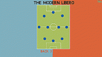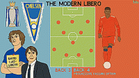 三人组的居中后卫发挥了清道夫的作用,尽管守门员现在也有这个任务,但是自由球员角色中更多的进攻元素是给了外侧中后卫。这是球员之间自由人角色的划分,在现代比赛中仍然非常重要。