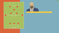 正如乔纳森·威尔逊在《倒转金字塔》中所写的,两个边锋后撤到边后卫的侧翼,这意味着有四人防守,但有一个后卫的后撤得更深,这名球员成为自由球员,但是拉潘的球队还会放弃空间,还会利用中后卫来发动进攻,所以这绝对是一个防守动作。