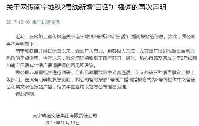 近年来,市民保育白话的呼声越来越高,但近期被赋予众望的“南宁地铁粤语报站”最终搁浅。