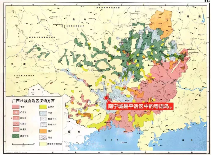 现在的南宁形成了壮话包围平话,平话又包围着粤语的“岛中之岛”型的方言岛。