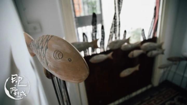 除此以外,四个年轻人还用当代艺术装点逵园。一楼对开玻璃幕墙设计成“水族馆”,客人穿过在墙体中游弋的木雕鱼儿,攀上年代久远的木扶梯……当代艺术的元素激活了逵园的历史氛围。
