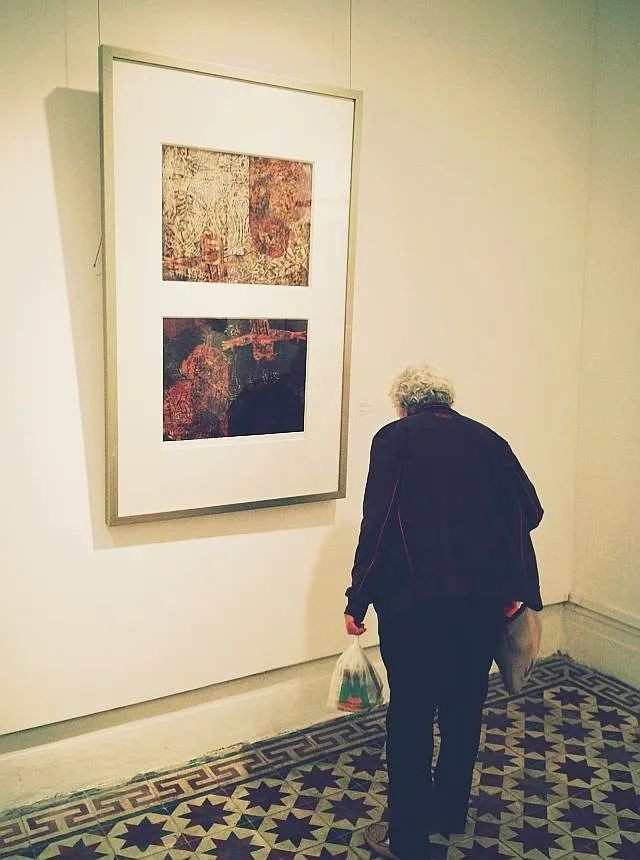 一位老奶奶刚买完菜路过逵园艺术馆,就毫无犹豫地提着菜进来看展,那聚精会神的样子令人动容