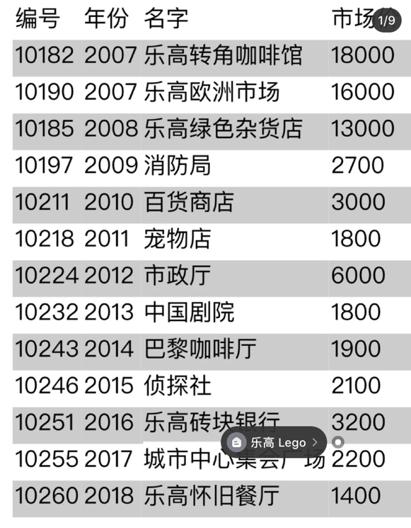 疫情期间,乐高公司宣布了关闭除了中国以外的门店,这让中国乐高现货又实现了一次价格走高。随着代购的货源也逐步紧缺,例如“砖块银行”这类绝版街景,价格已经翻了三倍,从1000多走到三千多,还在持续走高。