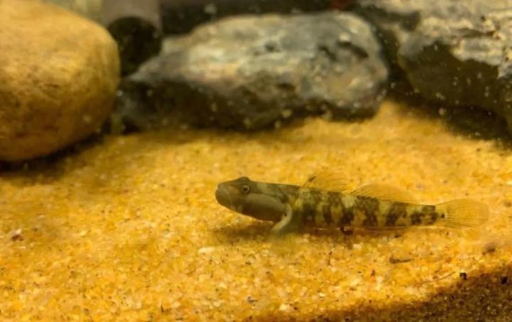 虾虎喜欢躲在石头缝里,只有每次喂小红虫的时候,会不经意地跑出来叼一只然后继续躲起来。