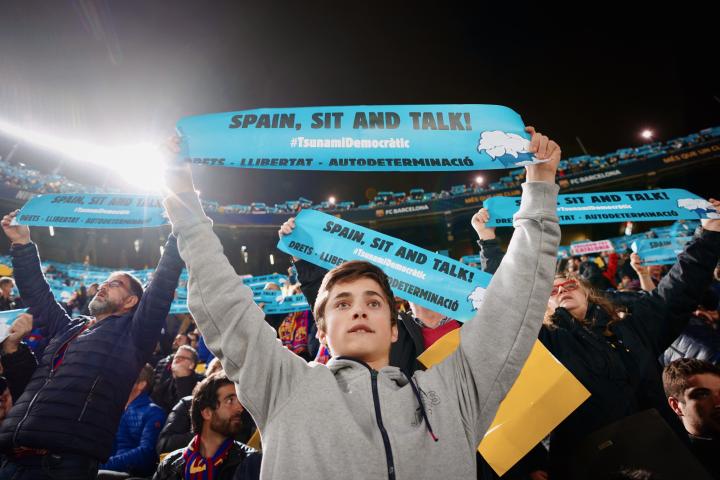 在开场的惯例“大合唱”中,加泰罗尼亚人用事先准备好的横幅取代了红蓝纸板。并在比赛进行到一半时,由看台最上层发起往场内扔球的行为,一时间空中飘来的充气足球如同白色雪花般覆盖在球场上,比赛不得不被迫中断。