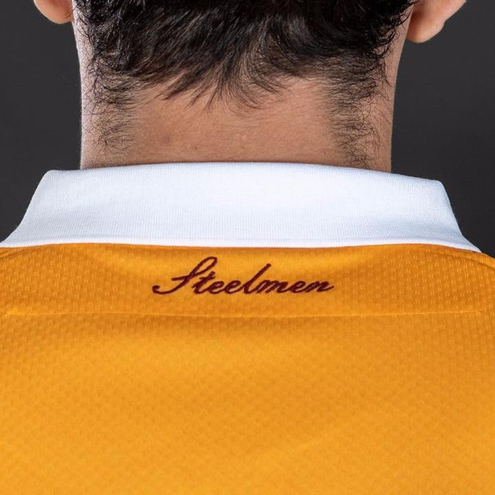 衣领与袖口加入白色条纹装饰,与白色球裤形成呼应,背后衣领下方绣有俱乐部昵称“Steelmen”(铁人)。与此同时,带有琥珀色条带的球袜也忠实再现了球队在70年前捧起联赛冠军奖杯时的装束。