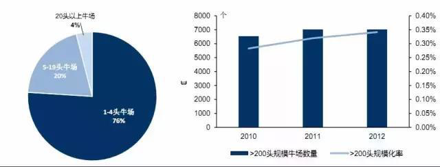 2017年时有个数据,我国有59%农户的肉牛饲养年出栏量在10头以下,100头以上的只有15%。