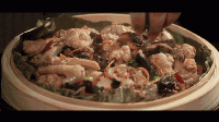 听名字就知道,这是用盐焗出来的鸡。客家盐焗鸡,其中又数东江盐焗鸡最为出名。
