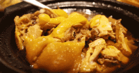 一只农家土鸡,遇上豆酱、芝麻酱、糖和盐,统一放进砂锅熟,就可以了。和广东其他鸡的清淡口感略有不同,豆瓣的味道可以浸入鸡肉的每一寸。